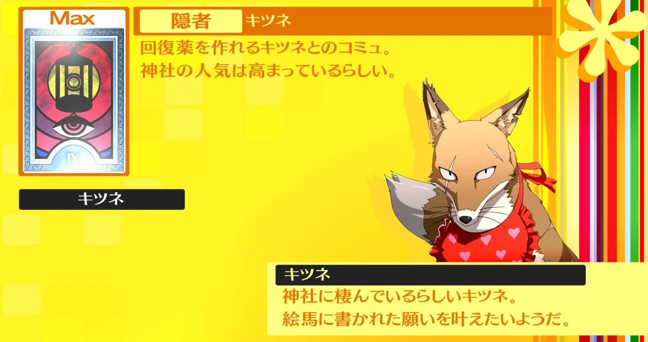 - 別日に再度神社を訪れ、キツネと過ごすとランクMAXになる