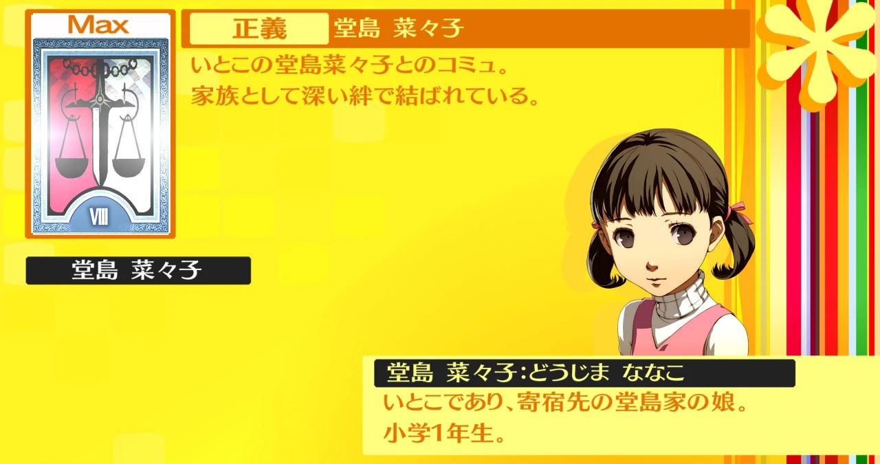アルカナ「正義」のペルソナを所持していると、好感度の上昇値が増加します。