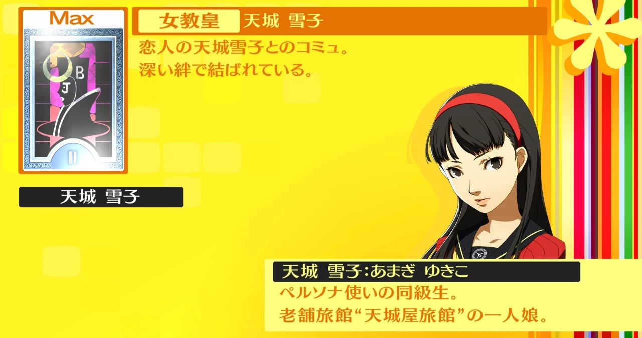 アルカナ「女教皇」のペルソナを所持していると、好感度の上昇値が増加します。